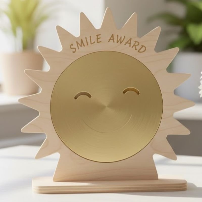 We believe a “Best Smile” deserves a clean process. We use high-precision laser technology to etch the award’s title and the recipient’s name directly into the wood. This method creates a beautiful, permanent contrast without the use of toxic inks, vinyl stickers, or chemical solvents. Because there are no paints to chip or peel, this award remains a safe, non-toxic, and long-lasting keepsake for any workspace.