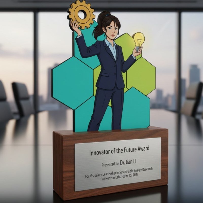 We use ultra-precise laser cutting technology to ensure every edge is smooth and every detail is captured perfectly. Our printing process utilizes eco-solvent, UV-curable inks that are low in VOCs, ensuring the award is safe for the office and the atmosphere. The result is a crisp, vivid character that will not fade or peel over time.