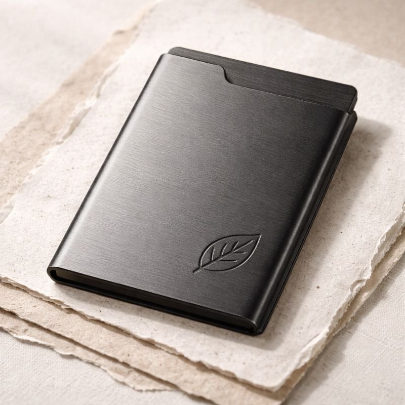 We believe in giving materials a second life. Depending on your choice of finish, our card cases are constructed from post-consumer recycled plastics or sustainably managed bamboo. By repurposing existing materials, we reduce the demand for virgin resources and help divert waste from landfills. These materials are chosen for their high tensile strength, ensuring your cards stay flat and protected in a rigid, impact-resistant frame.