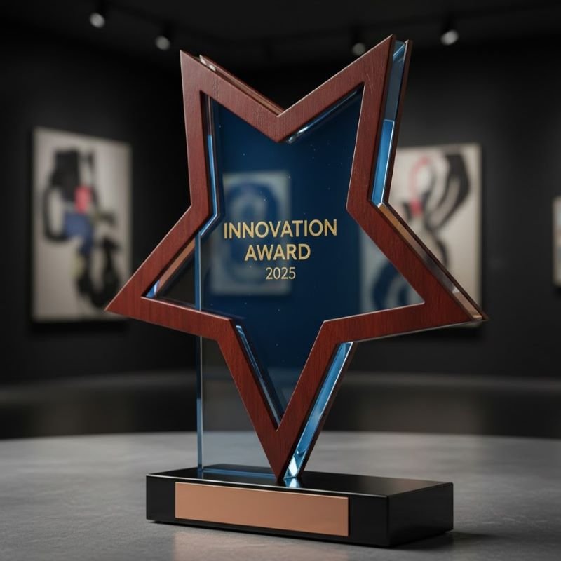 To bring your custom shape to life, we use high-resolution laser etching for all branding and text. This ink-free method creates a permanent, high-contrast finish that won’t peel or fade over time. Because we avoid chemical paints and synthetic dyes, the award remains a clean, non-toxic object suitable for any professional environment. Every detail is etched with light, preserving the material’s natural integrity and recyclability.