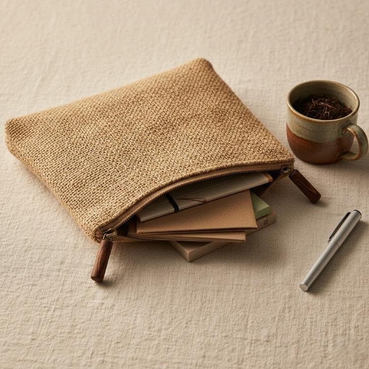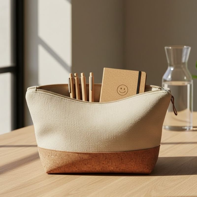 A durable, multi-purpose organizer pouch crafted from recycled canvas and natural cork for the eco-conscious traveler and professional.