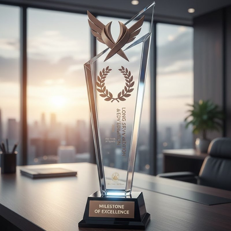 The Excellence in Leadership Award is designed for those who navigate complexity with ease. By integrating reclaimed solid wood bases with modern, recycled glass or metal spires, we symbolize the bridge between grounded experience and future-focused innovation. This award doesn’t just recognize a title; it celebrates a legacy of positive impact.