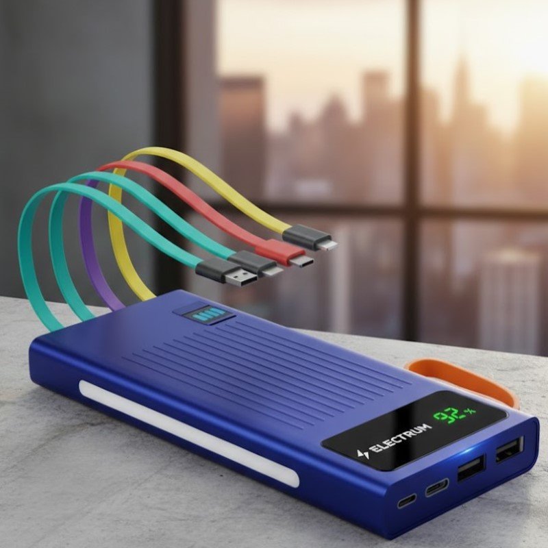 We believe technology shouldn’t come at the cost of the Earth. This power bank features a housing made from 100% post-consumer recycled plastic and biodegradable accents. By choosing integrated cables, we reduce the demand for additional plastic-heavy accessories, helping you maintain a smaller environmental footprint without sacrificing performance.