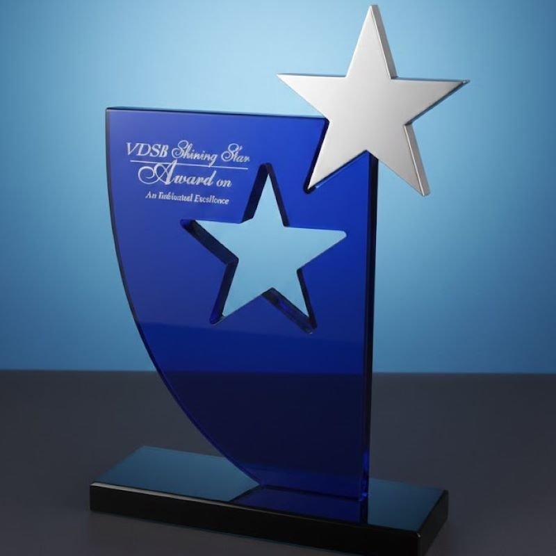 We believe that high achievement should be celebrated with high-integrity materials. The Shining Star Award features a base of solid, responsibly sourced walnut, finished with a VOC-free natural wax. The star itself is precision-cut from 100% recycled aluminum, which requires 95% less energy to produce than primary aluminum, ensuring your recognition program supports a circular economy.